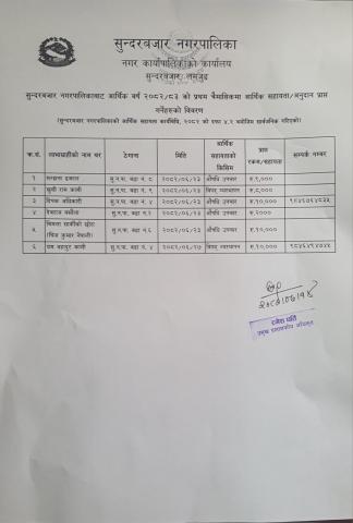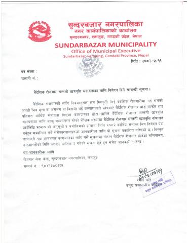 सुन्दरबजार नगरपालिकाद्वारा संचालित शैक्षिक सत्र २०८१ को आधारभूत तह (कक्षा ८) उतिर्ण परीक्षाको नतिजा प्रकाशन गरिएको छ । विद्यार्थी तथा अभिभावकहरुले सम्बन्धित विध्यालयमा सम्पर्क राख्नु हुन अनुरोध छ ।