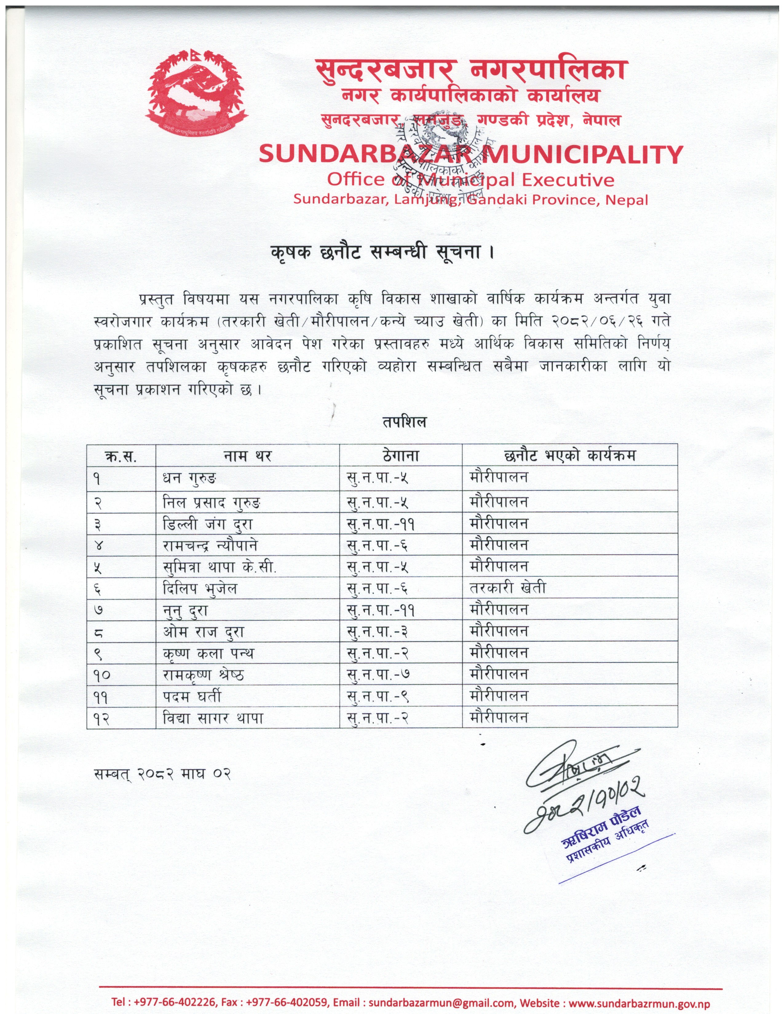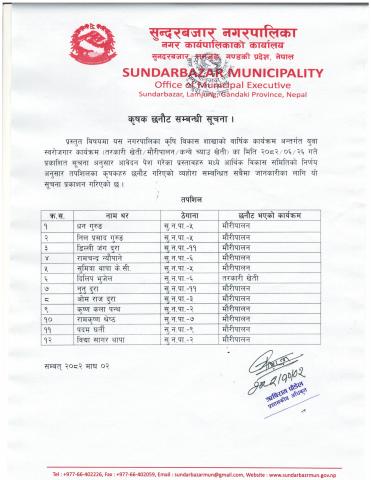 आ.व २०७६ /२०७७ सुन्दरबजार नगरपालिकाको वडागत योजना
