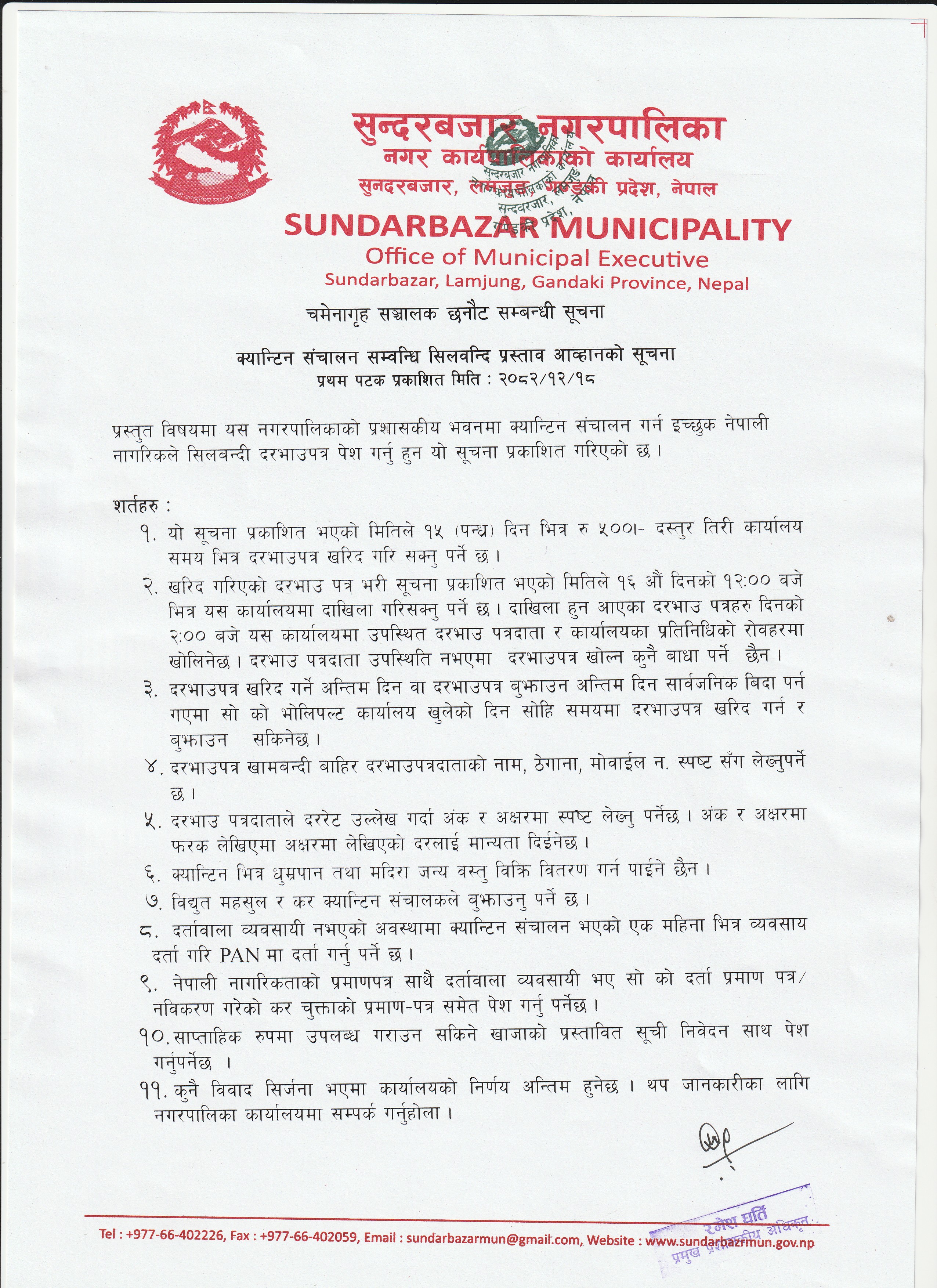 चमेनागृह संचालक छनौट सम्बन्धि सुचना