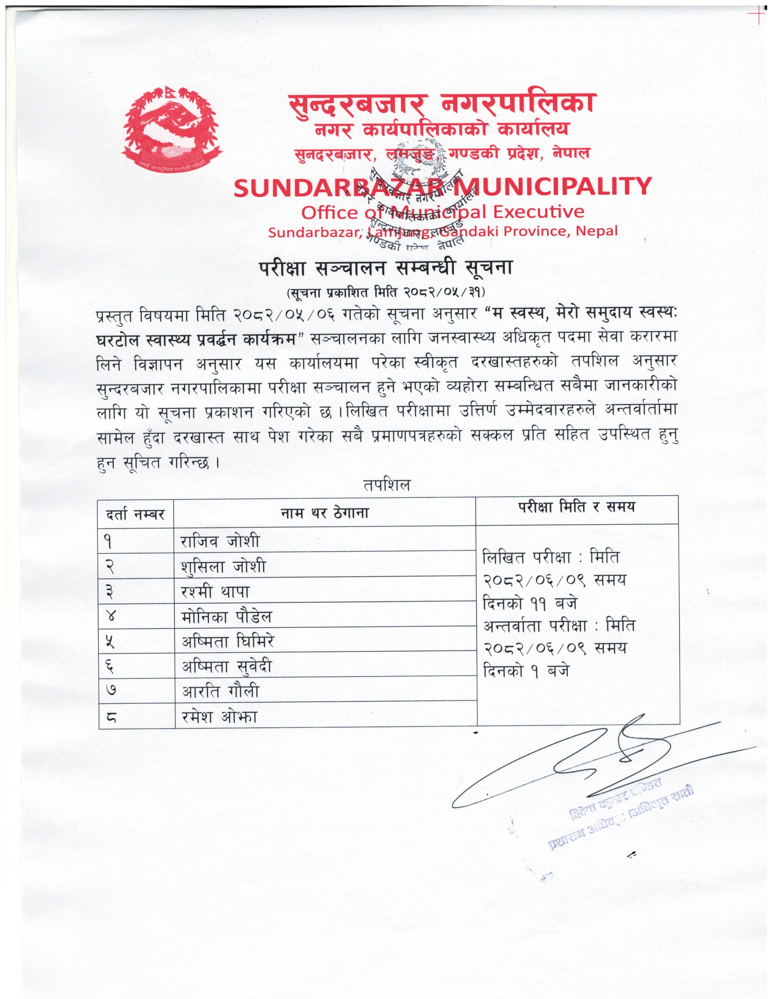 अन्तरवार्ता परीक्षा संचालन सम्बन्धि सूचना