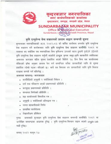 कृषि एम्बुलेन्स सेवा सञ्चालनको प्रस्ताव आह्वान सम्बन्धी सूचना