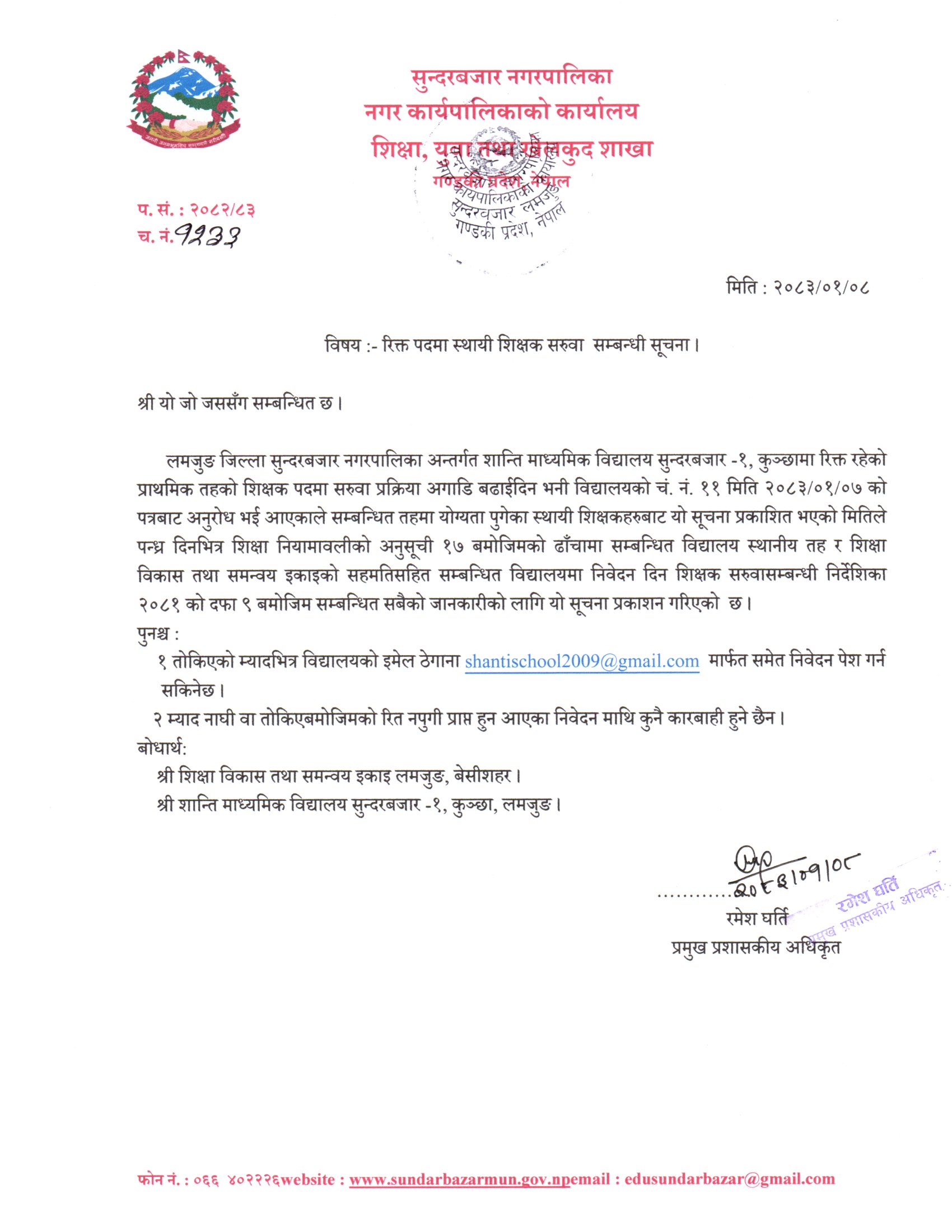 रिक्त पदमा स्थायी शिक्षक सरुवा सम्बन्धी सूचना