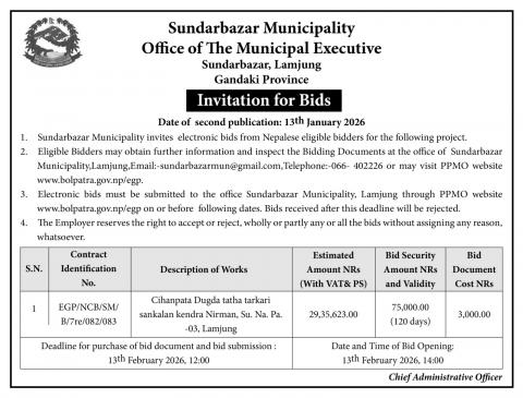 invitation for bids for construction of cihanpata dugda tatha tarakari sankalan kendra bhawan (2nd))